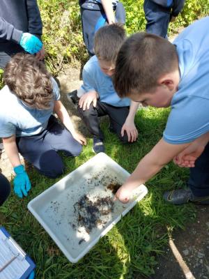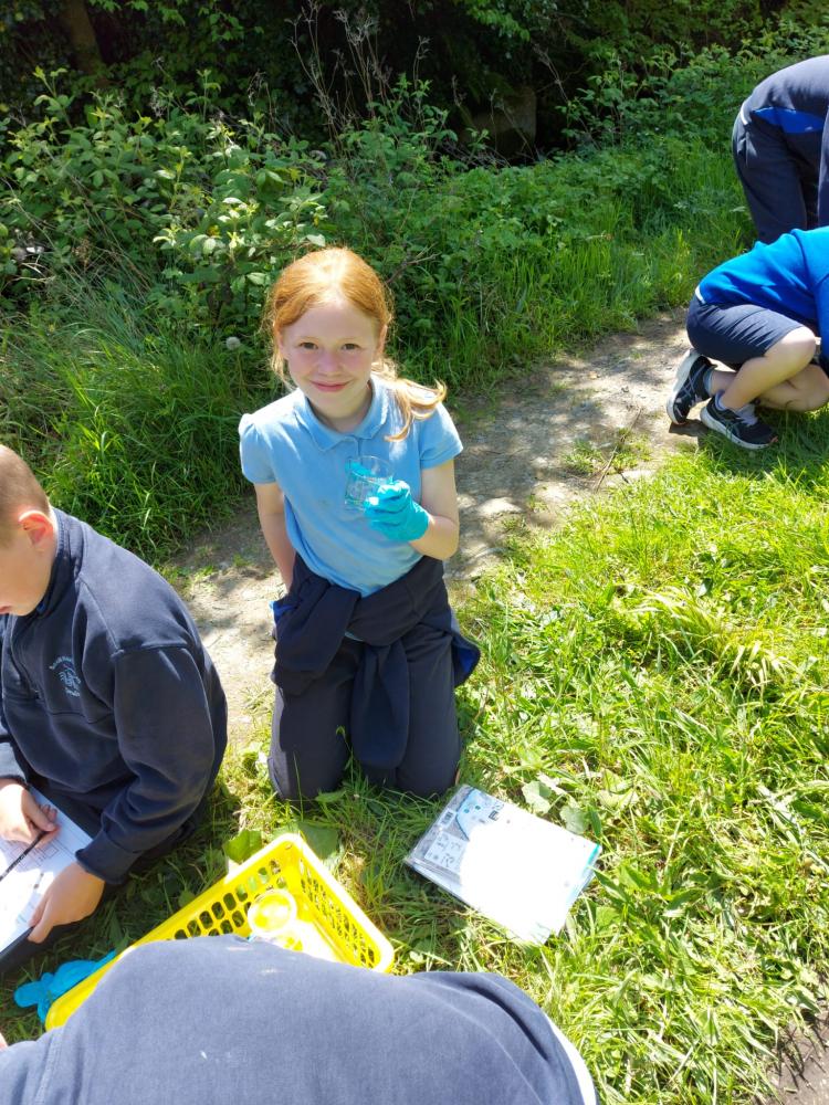 Examples of invertebrates that were being looked for in the kick sampling study were dragonflies, mayflies, water beetles, fly lava, and chalcid wasps and from the sample analysis, the quality of the river can be determined.